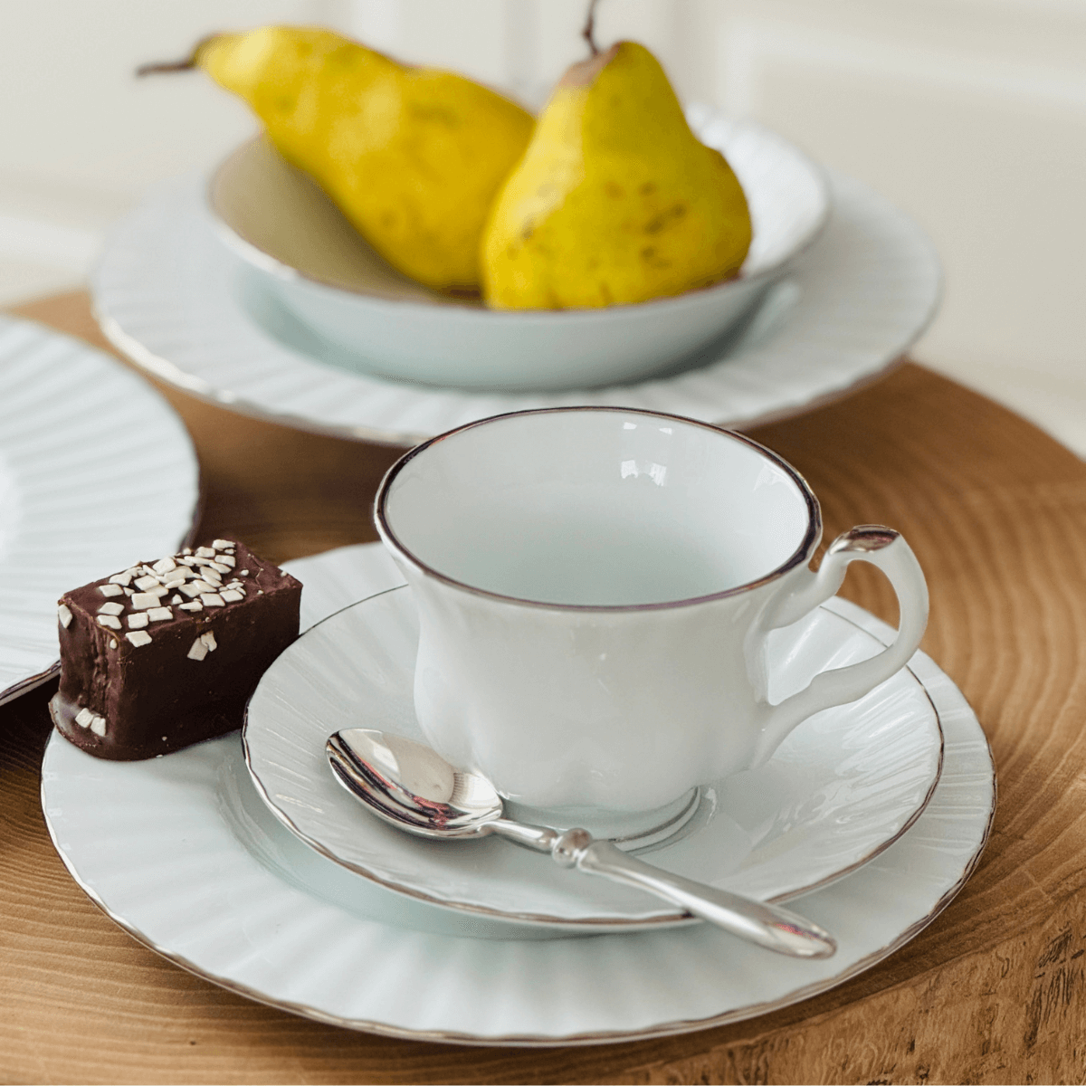 Wyjątkowy zestaw porcelanowy Caro Platin dla 6 osób, składający się z 36 elementów, to synonim ponadczasowej elegancji i wyrafinowanego stylu. Każdy element został ręcznie wykończony subtelną platynową linią, która nadaje całości luksusowego charakteru. Idealny na wyjątkowe okazje i codzienne posiłki, podkreślając klasę i dobry smak gospodarzy.