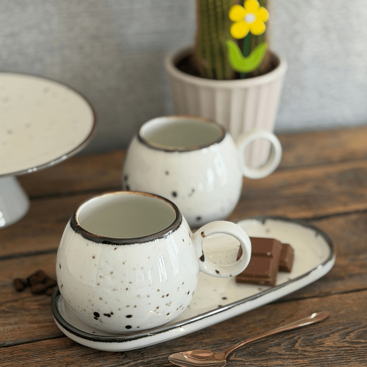 COTTAGE CREAM zestaw śniadaniowy 2 x KUBEK SL46 + tacka - Alumina Bogucice